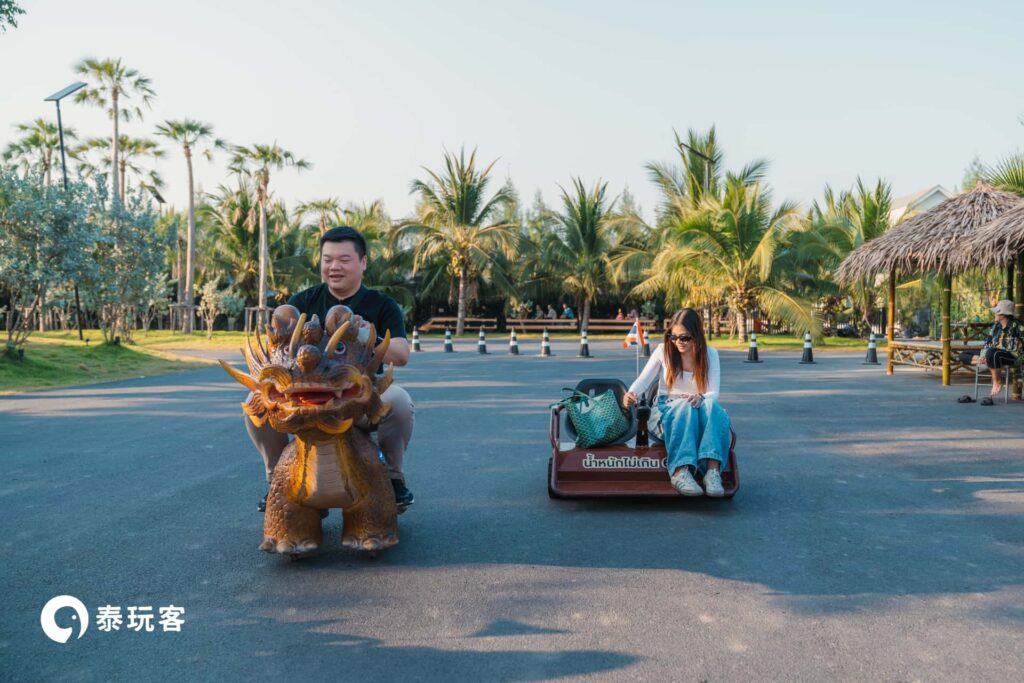 丹嫩莎朵最新地標「飛機咖啡廳樂園(Damnoen Sky)」,將震撼的真實退役客機搬進廣闊園區,打造出獨特的飛行主題空間。遊客能登上機艙,在冷氣舒爽的座艙內享受精緻下午茶。最吸引人的是園區內豐富的玩樂體驗,多數設施皆可免費使用,包括悠閒划船、趣味恐龍車、彈跳床、履帶車及繞園小火車,非常適合親子同樂。